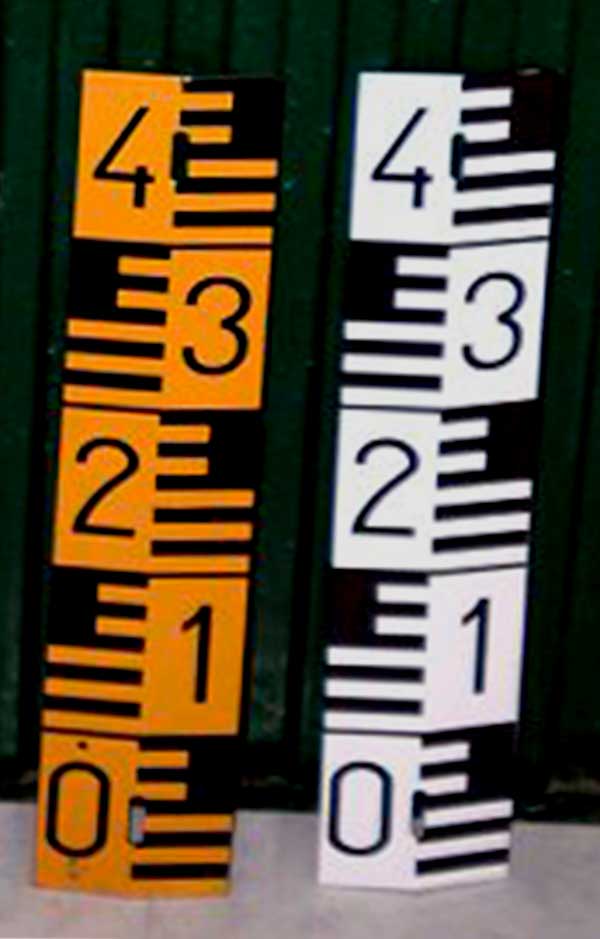 Nous fabriquons des Échelles hydrométriques émaillées 50 cm en tôle d'acier revêtue d'émail émaillé à 800 ° C d'une épaisseur de 1,5 mm. Couleurs: blanc avec échelle noire et jaune avec échelle noire Taille: 10x50 cm