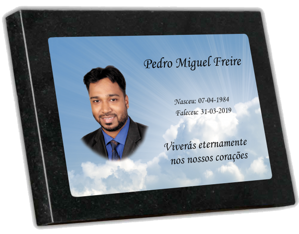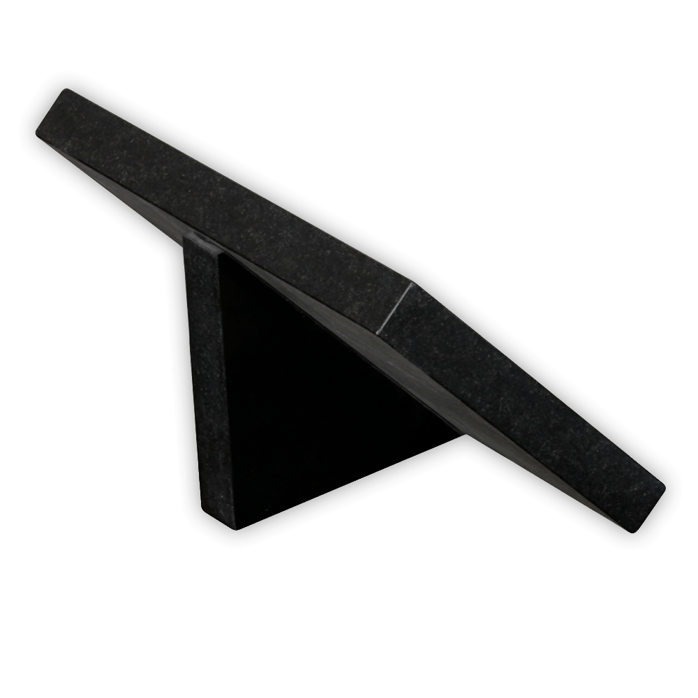 Lápide em Granito Preto com suporte de cunha na traseira da pedra de Granito.